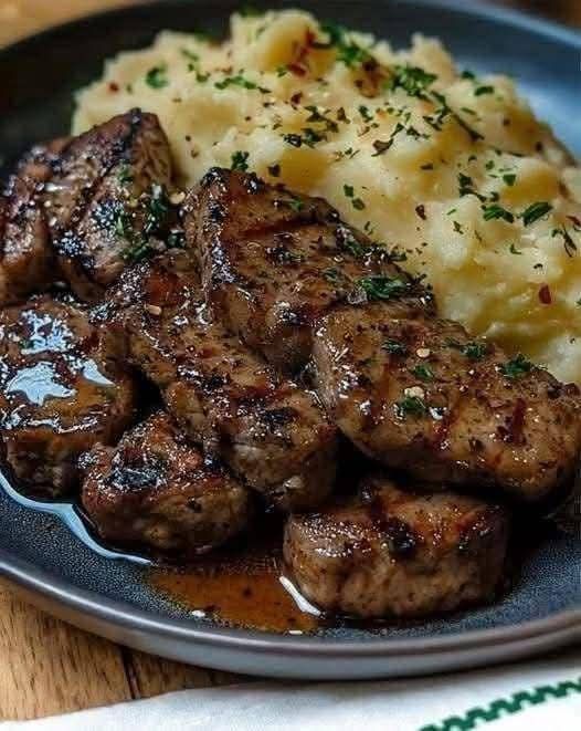 For the Steak Bites:1 1/2 pounds steak (sirloin, ribeye, or tenderloin, cut into 1-inch cubes)2 tablespoons olive oil3 tablespoons unsalted butter4 garlic cloves, minced1 teaspoon fresh thyme leaves (or 1/2 teaspoon dried thyme)1/2 teaspoon smoked paprika (optional)Salt and black pepper, to tasteFor the Mashed Potatoes:2 pounds potatoes (Yukon gold or Russet, peeled and cubed)1/4 cup unsalted butter1/2 cup heavy cream (or milk for a lighter option)2 garlic cloves, minced (optional)Salt and black pepper, to tasteFresh parsley, chopped (for garnish)